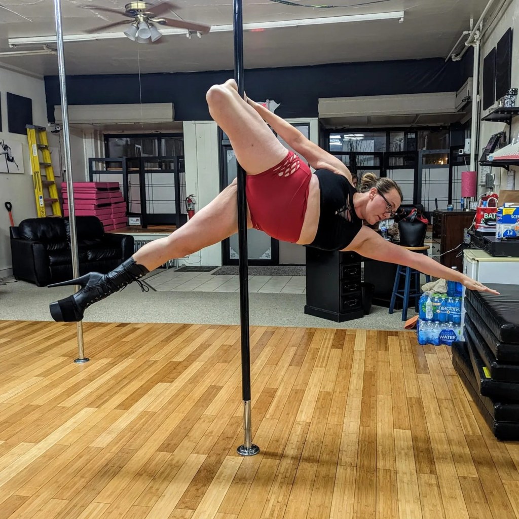 What gives me a unique edge is that I do pole dance fitness and am actually a part-time stand-in instructor at my studio. I’ve done it for 5 years now and am in advanced classes. From the outside, I look like a total badass with the pictures and videos I’ve shared of me in some pretty awesome looking tricks! While I can execute some impressive tricks, it’s often more about body positioning than strength. I tend to gravitate toward easier moves that look cool but require minimal effort, sticking to the comfort zone rather than pushing my limits. After five years of attending classes 2-3 nights a week, I’ve become aware of how lazy and un-dedicated I can be. I can nail some flashy moves, but I never cross-train or practice outside of class or challenge myself with more technically demanding skills. At this point, I know I could be much further along in my fitness journey if I actually put in the effort.