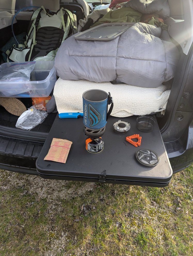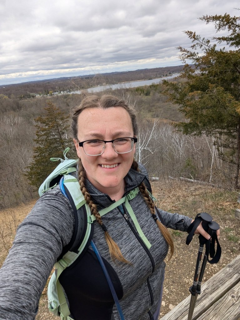 I was part of a big, well-run event on the Ice Age Trail through the Northern Kettle Moraine State Forest put on by Badger Trails. Some people backpacked, some day hiked, some camped in tents. I opted for car camping, sleeping on the comfy bed in the back of my SUV. My original plan was to backpack, working on getting used to carrying weight and pushing myself physically. But time caught up with me and I was nowhere near prepared for that! I want to train, but I need to find the fine line between pushing myself and destroying myself. So I pulled it back a bit and decided to just test a simplified SUV camping set-up to prepare for my next solo Colorado road trip in June.