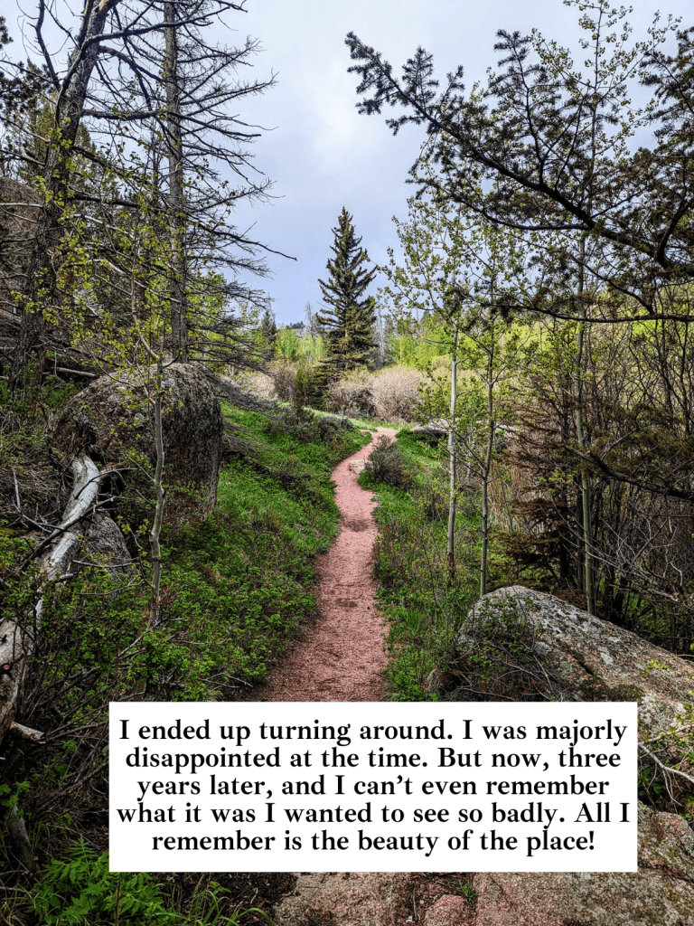But here’s the catch, and I think it’s important: you only get that if you let yourself receive it. If you leave the trail furious that you had to turn around, you will miss it! The magic was there but you missed it because you were stuck in your head and in your rigid plan and in your own expectations. The guru was there the whole time, because the guru IS you and it is nature itself. You have to be willing and open to find what you actually came for, which is often not what you even set out to do and see in the first place.